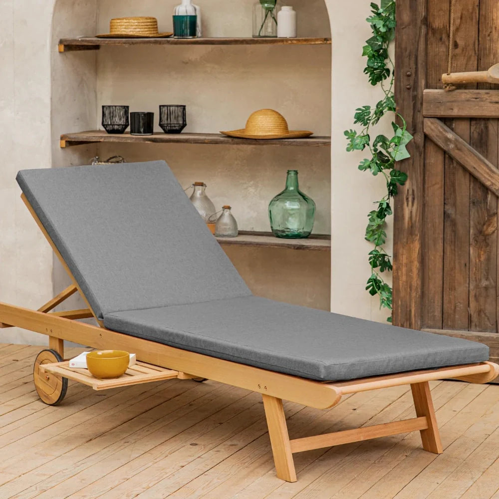 Ce bain de soleil en bois avec matelas a ce petit truc qui donne envie de dire “je fais rien, et alors ?”. Fabriqué en acacia, un bois solide et naturellement résistant, il garde sa belle allure saison après saison. Son dossier inclinable et son matelas bien moelleux invitent clairement à s’allonger “juste cinq minutes” (et à se réveiller deux heures plus tard). Et grâce à sa tablette coulissante, plus besoin de vous lever pour attraper votre verre ou votre téléphone. 🍹